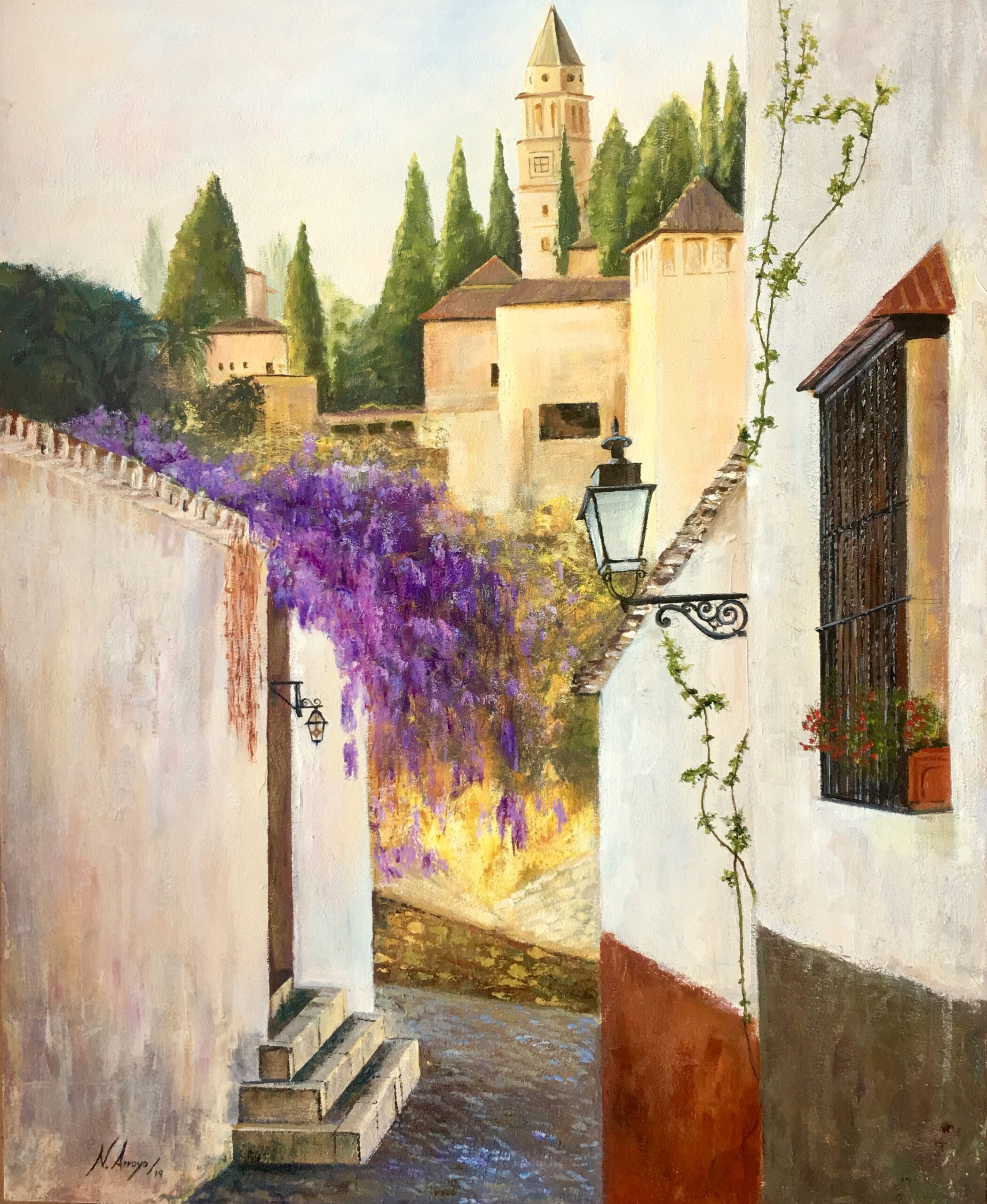 En esta exposición del Círculo de Pintores participo con mi obra «El Albaicín» Óleo/Tabla 81x65cm,